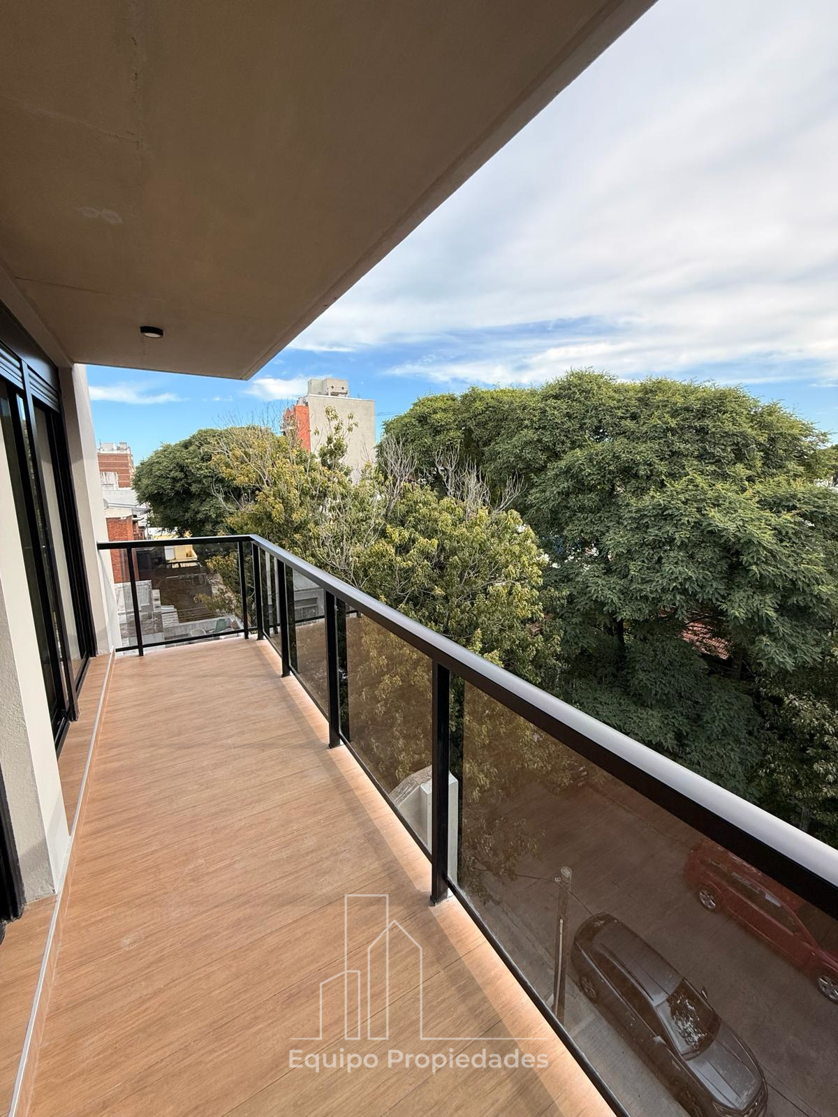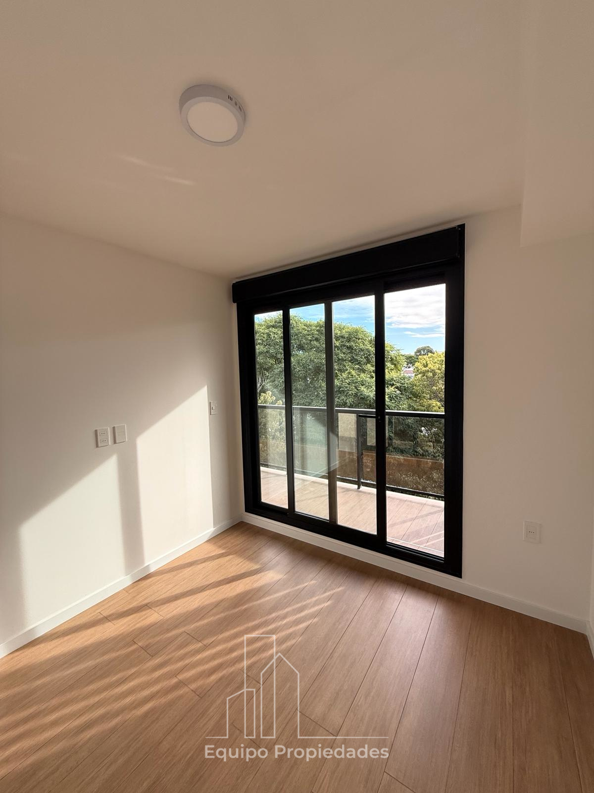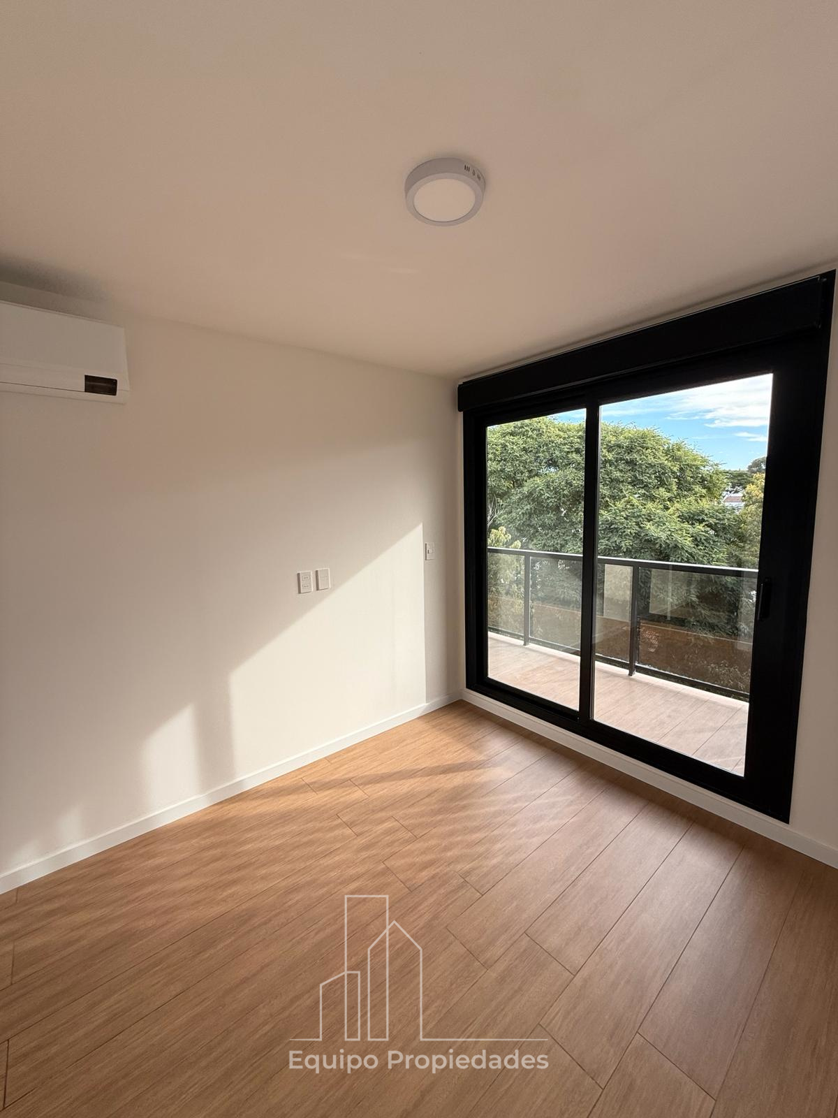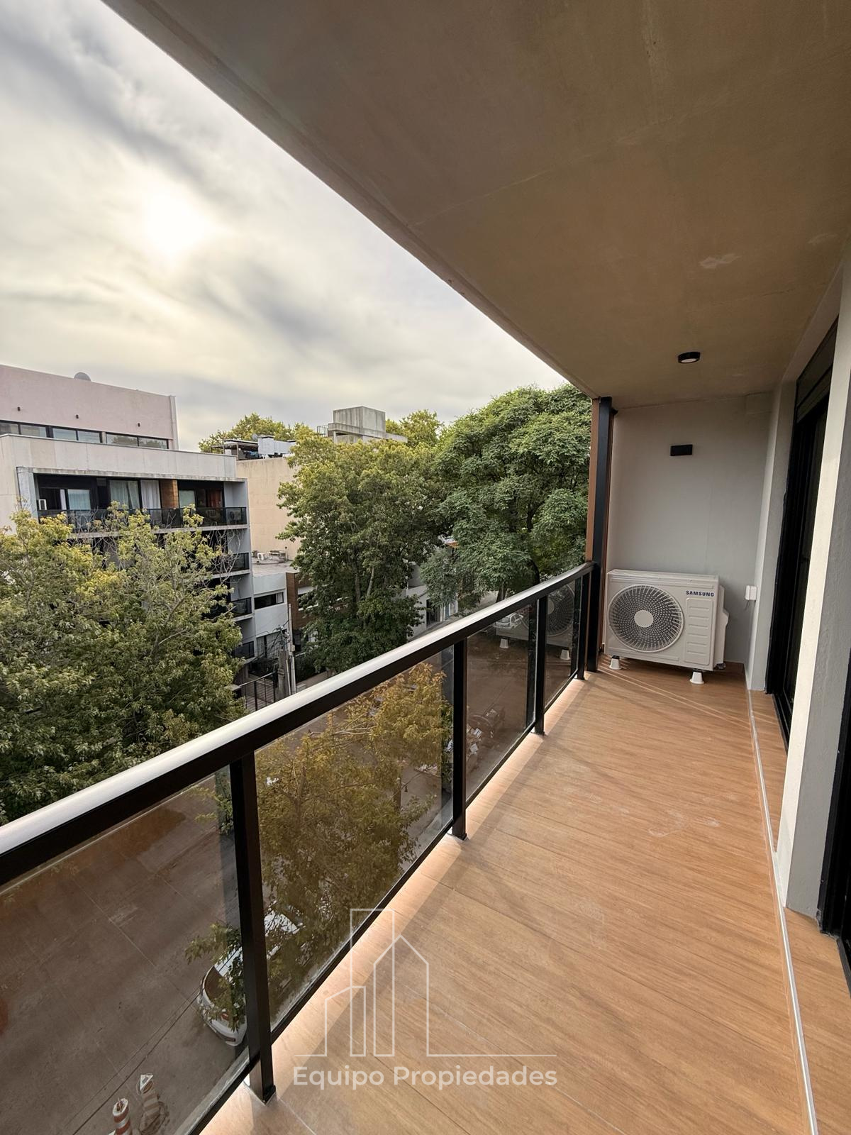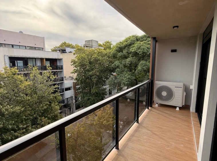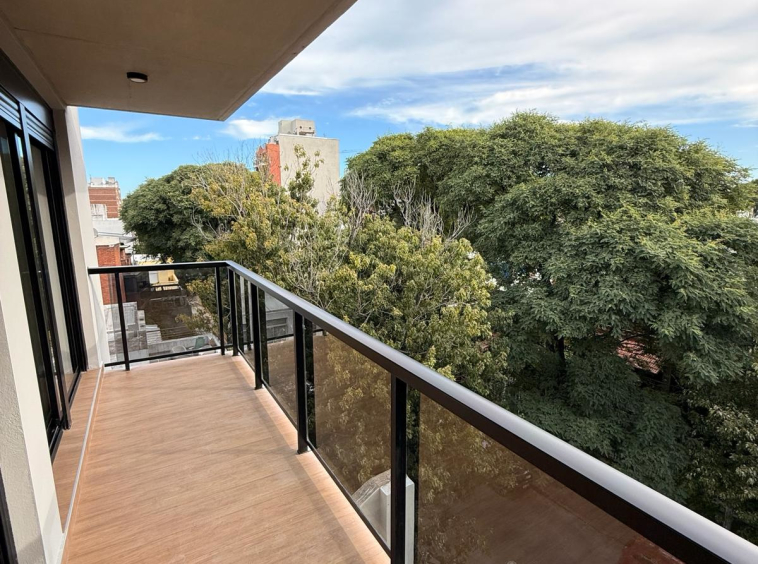 Living comedor y dormitorio con salida a terraza de 6m2, dormitorio con placares.